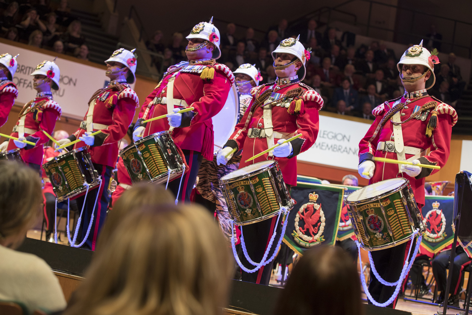 Het Corps of Drums is herkenbaar aan de iconische witte koloniale helmen en voegt extra flair toe aan elk optreden. De band is een vaste aanwezigheid in het Principality Stadium in Cardiff en maakt wereldwijd indruk op een breed publiek.